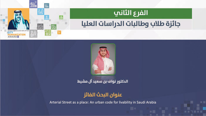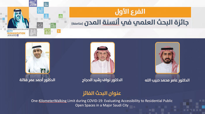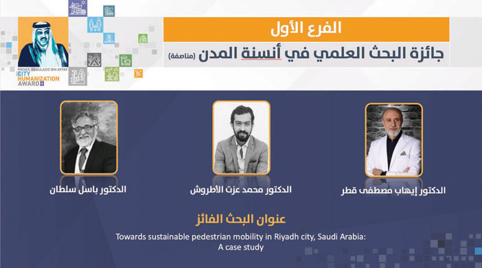 وأكد نائب رئيس مجلس إدارة الجائزة، عميد كلية العمارة والتخطيط الدكتور عبدالعزيز بن جارالله الدغيشم أن الجائزة تسهم في تعزيز البحث العلمي والمبادرات التي تخدم المجتمع العمراني، وتجسد النظرة والاهتمام بالمدن وتطويرها لتكون مستدامة ومتكاملة وصديقة للبيئة في العصر الحالي حيث تتزايد التحديات العمرانية والاجتماعية والبيئية لتكون هذه المبادرة حجر الزاوية الذي تتطلع إليه في أنسنة بيئاتنا العمرانية؛ مما يعزز جودة الحياة لسكانها.من جانبه أوضح الأمين العام للجائزة الدكتور سميح العرابي أن الجائزة خلال هذه الفترة القصيرة استطاعت أن تضع بصمة واضحة في الوسط العمراني في المملكة، وأثرت بشكل فاعل في تسليط الضوء على الباحثين والباحثات المتميزين والتعريف بهم، مما أسهم في تطوير مسيرتهم المهنية، وتقلدهم مراكز ومناصب مرموقة في القطاعين العام والخاص، وخلال العامين الماضيين، شهد النشر العلمي زيادة ملحوظة في مجال أنسنة المدن في المملكة، بل وعلى المستوى العربي.وأضاف أن الزيادة العددية صاحبها تطور نوعي وموضوعي؛ فقد تقدم للجائزة أكثر من 74 باحثا وباحثة للمنافسة على جوائز هذا العام تضمنت أبحاثا نوعية في عدة موضوعات تمس قضايا أنسنة المدن، لم تقدم حلولا نظرية فحسب، بل شملت أيضا تطبيقات عملية تسهم في تحسين جودة الحياة في المدن، مشيرا إلى اتساع دائرة الأنشطة لتشمل إطلاق مبادرة استديو التصميم العمراني لأنسنة الأحياء السكنية، التي شارك فيها أكثر من 200 طالب وطالبة وأكثر من 20 خبيرا ومتخصصا، وسلسلة من المحاضرات العمرانية التي شارك فيها نخبة من الخبراء والباحثين، مما أحدث حراكا فكريا وأكاديميا مميزا خلال الفترة الماضية.