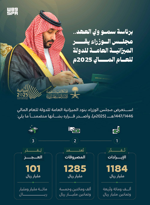 وأكّد سمو ولي العهد استمرار مساهمة الإنفاق الحكومي في تنويع الاقتصاد من خلال التركيز على تمكين القطاعات الواعدة، وتعزيز جذب الاستثمارات، وتحفيز الصناعات، ورفع نسبة المحتوى المحلي والصادرات غير النفطية، والاستمرار في كامل برامج تحقيق رؤية المملكة 2030 والاستراتيجيات الوطنية، وتعزيز دور القطاع الخاص لزيادة مساهمته في المشاريع الاستثمارية؛ مما يمكّن الحكومة من مواصلة العمل على تعزيز النمو الاقتصادي الشامل والمستدام، واستمرار جهود الحكومة وفق التخطيط الممنهج على المديين المتوسط والطويل مع الأخذ بعين الاعتبار كافة التطورات والتحديات الاقتصادية الإقليمية والعالمية؛ لضمان تحقيق مستهدفاتها مع الحفاظ على المكتسبات الاقتصادية والاستدامة المالية.
