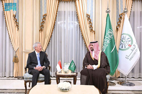 استقبل صاحب السمو الملكي الأمير خالد بن سلمان بن عبدالعزيز وزير الدفاع، في مكتبه بالرياض أمس معالي كبير الوزراء والوزير المنسق للأمن القومي السنغافوري تيو تشي هين.