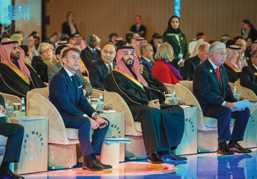افتتح صاحب السمو الملكي الأمير محمد بن سلمان بن عبدالعزيز آل سعود ولي العهد رئيس مجلس الوزراء - أيده الله - أمس الثلاثاء في مدينة الرياض، قمة المياه الواحدة، والتي تعقد برئاسة مشتركة بين سموه، وفخامة الرئيس إيمانويل ماكرون، رئيس الجمهورية الفرنسية، وفخامة الرئيس قاسم جومارت توكاييف، رئيس جمهورية كازاخستان، ومعالي رئيس البنك الدولي السيد أجاي بانجا.