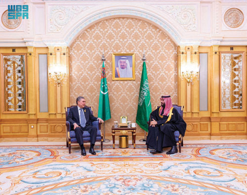 كما التقى سمو ولي العهد في الرياض، أمس، فخامة السيد قربان قلي بردي محمدوف القائد الوطني للشعب التركماني رئيس مجلس الشعب، وذلك على هامش قمة المياه الواحدة.