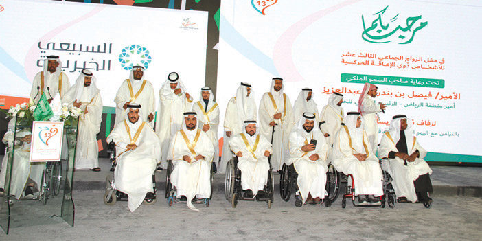 رعى صاحب السمو الملكي الأمير فيصل بن بندر بن عبدالعزيز أمير منطقة الرياض حفل الزواج الجماعي الثالث عشر للأشخاص ذوي الإعاقة الحركية الذي تنظمه جمعية الإعاقة الحركية للكبار، في مدينة الرياض.