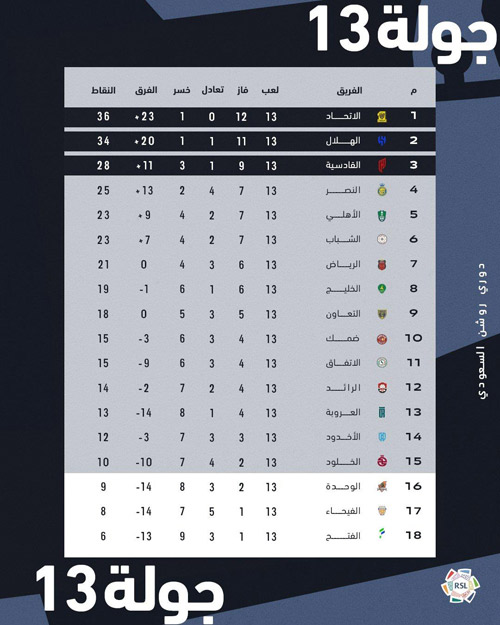 بهذه النتيجة رفع الاتفاق رصيده النقطي إلى 15 نقطة متقدما إلى المركز 11 فيما بقي الخليج على نقاطه 19 نقطة ثامن ترتيب دوري روشن.
