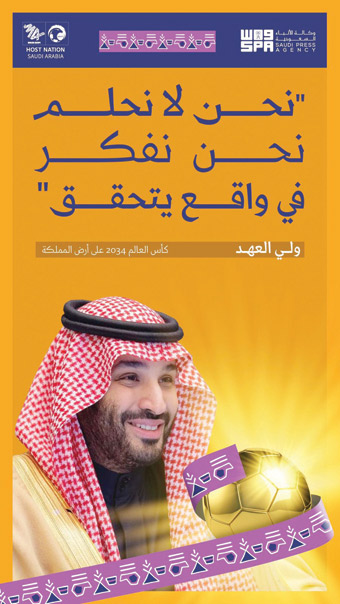 وشدد سمو ولي العهد - حفظه الله - على عزم المملكة الكبير بالمساهمة الفعّالة في تطوير لعبة كرة القدم حول العالم، ونشر رسائل المحبة والسلام والتسامح، متسلحة بقدراتها وإمكاناتها الكبيرة، علاوة على طاقات شعب المملكة وهممهم العالية لتحقيق الصعاب، والتي كان إحدى ثمارها الفوز بملف استضافة كأس العالم بشكل رسمي.