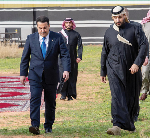 التقى صاحب السمو الملكي الأمير محمد بن سلمان بن عبدالعزيز آل سعود، ولي العهد رئيس مجلس الوزراء، بالمخيم الشتوي بالعلا أمس دولة الأستاذ محمد شياع السوداني رئيس مجلس الوزراء القائد العام للقوات المسلحة في جمهورية العراق.