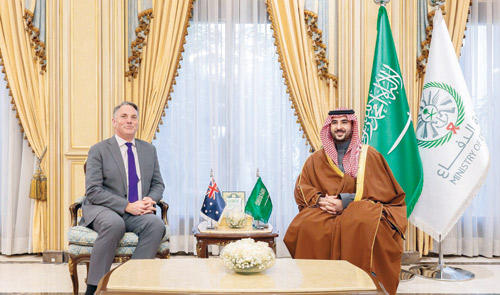استقبل صاحب السمو الملكي الأمير خالد بن سلمان بن عبدالعزيز وزير الدفاع، في مكتبه بالرياض أمس معالي نائب رئيس الوزراء وزير الدفاع الأسترالي ريتشارد مارلز.