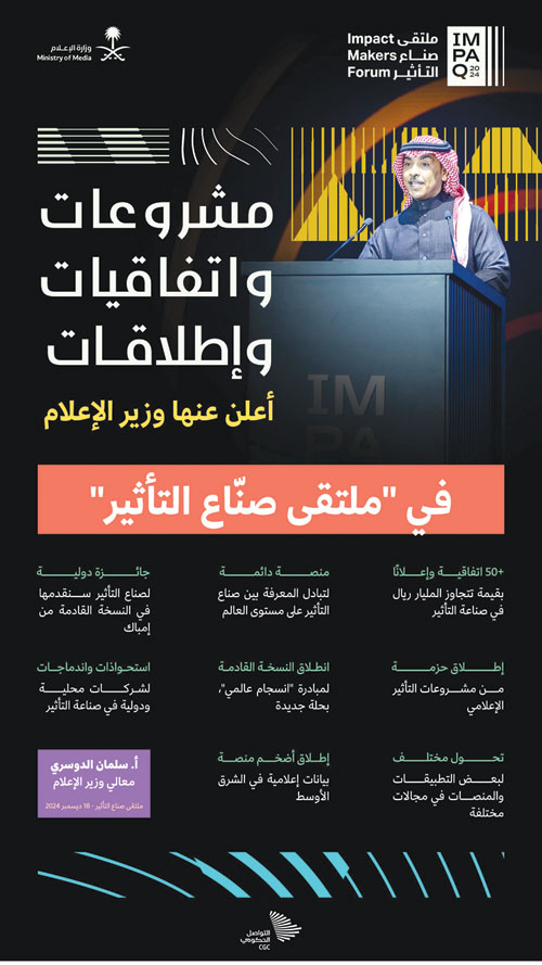 برعاية معالي وزير الإعلام الأستاذ سلمان بن يوسف الدوسري، انطلقت أمس فعاليات ملتقى «صُنّاع التأثير ImpaQ» في الدرعية، بحضور نخبة من المؤثرين العالميين والخبراء وصُنّاع المحتوى من مختلف أنحاء العالم.