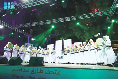 كما جذبت العروض الأدائية التقليدية الأنظار، مقدمة رحلة ممتعة في عمق الموروث السعودي، فيما أضفى عرض الإسقاط الضوئي طابعًا مميزًا على واجهة المتحف بالزخرفات المستوحاة من هوية المكان.