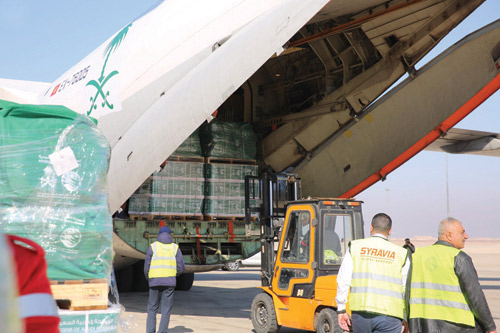 وتأتي هذه المساعدات الإنسانية المقدمة من المملكة للشعب السوري للتخفيف من معاناة المتضررين في سوريا، وتجسيدًا للدور الإنساني الكبير الذي تقوم به المملكة عبر ذراعها الإنساني مركز الملك سلمان للإغاثة تجاه المحتاجين والمتضررين أينما كانوا.كما وصلت إلى مطار دمشق الدولي بالجمهورية العربية السورية أمس الطائرة الإغاثية الثانية ضمن الجسر الجوي السعودي الذي يسيّره مركز الملك سلمان للإغاثة والأعمال الإنسانية لمساعدة الشعب السوري الشقيق تحمل على متنها المواد الغذائية والإيوائية والطبية.