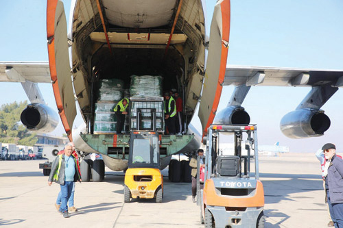 وصلت إلى مطار دمشق الدولي بالجمهورية العربية السورية أمس الطائرة الإغاثية الأولى، أولى طلائع الجسر الجوي السعودي الذي يسيّره مركز الملك سلمان للإغاثة والأعمال الإنسانية تحمل على متنها المساعدات الإغاثية التي تشتمل على مواد غذائية وإيوائية وطبية يرافقها فريق من المركز.