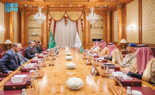 حضر اللقاء صاحب السمو الأمير فيصل بن فرحان بن عبدالله وزير الخارجية، وصاحب السمو الأمير عبدالرحمن بن محمد بن عياف نائب وزير الدفاع، ومعالي رئيس الاستخبارات العامة الأستاذ خالد بن علي الحميدان، ومعالي رئيس هيئة الأركان العامة الفريق الأول الركن فياض بن حامد الرويلي، ومدير عام مكتب وزير الدفاع هشام بن عبدالعزيز بن سيف.