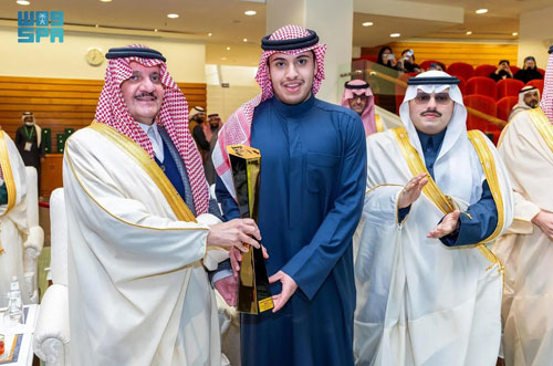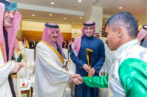 سلَّم الأمير سعود بن نايف أمير المنطقة الشرقية أول أمس، في ميدان الملك عبدالعزيز للفروسية بمدينة الرياض، كأس الأمير نايف بن عبدالعزيز -رحمه الله- للفائز في السباق الذي يُقام ضمن فعاليات كؤوس الملوك والأمراء، التي ينظِّمها نادي سباقات الخيل بالرياض. وفاز بالكأس الجواد «أجودي» لمالكه الشيخ فيصل عبدالله حمود المالك الصباح، الذي تسلَّم الكأس بحضور الخيال محمد الدهام.