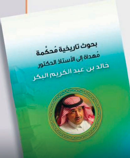 وأصدر قسم التاريخ بهذه المناسبة كتاباً تكريمياً حوى العديد من البحوث العلمية المحكمة مهداة للمحتفى به د. خالد البكر، وتم تدشينه في حفل شرفه سعادة وكيل كلية الآداب.