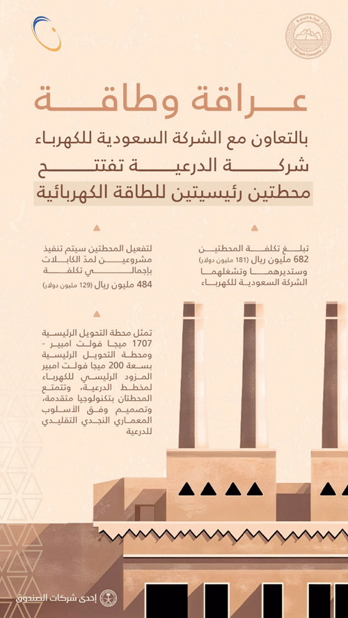 أعلنت شركة الدرعية أمس عن افتتاح محطتين متطورتين لنقل الكهرباء في الدرعية، وهما: محطة التحويل المركزية بسعة 1707 ميجا فولت أمبير، ومحطة التحويل الرئيسية بسعة 200 ميجا فولت أمبير، اللتان ستسهمان في تسريع نمو وتطوير الأصول في الدرعية ووادي صفار، وستعمل الشركة السعودية للكهرباء على تشغيل هاتين المحطتين، حيث تُعد أولى محطات مشروع التنمية الحضرية التي تتميز بتصميم مستوحى من الطابع المعماري النجدي.