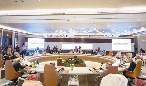 بدعوة من سمو وزير خارجية المملكة العربية السعودية الأمير فيصل بن فرحان، واستكمالاً للاجتماعات الوزارية التي استضافتها المملكة الأردنية الهاشمية في مدينة العقبة في تاريخ 14 ديسمبر 2024م، اجتمع الأحد 12 يناير 2025م، في مدينة الرياض وزراء خارجية وممثلو كلٍ من مملكة البحرين، وجمهورية مصر العربية، والجمهورية الفرنسية، وجمهورية ألمانيا الاتحادية، وجمهورية العراق، والجمهورية الإيطالية، والمملكة الأردنية الهاشمية، ودولة الكويت، والجمهورية اللبنانية، وسلطنة عُمان، ودولة قطر، ومملكة إسبانيا، والجمهورية العربية السورية، والجمهورية التركية، ودولة الإمارات العربية المتحدة، والمملكة المتحدة لبريطانيا العظمى وإيرلندا الشمالية، والولايات المتحدة الأمريكية، ومعالي الأمين العام لجامعة الدول العربية، ومعالي الممثلة السامية للاتحاد الأوروبي للشؤون الخارجية والسياسات الأمنية، ومعالي الأمين العام لمجلس التعاون لدول الخليج العربية، ومبعوث الأمم المتحدة الخاص لسوريا.