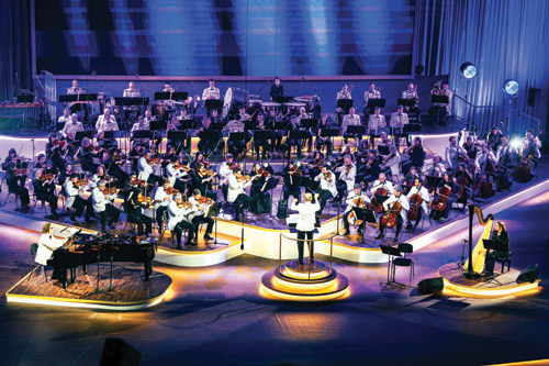 وفي الحفل عزفت مجموعة من مقطوعاته الموسيقية المميزة التي تنوعت بين الألحان الكلاسيكية والمؤلفات الخاصة، من أبرزها «Fanfare and March»، «Circus»، و»Bracken Road».