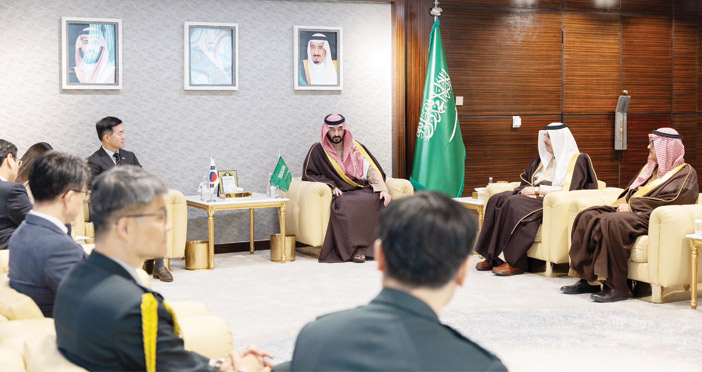 استقبل صاحب السمو الملكي الأمير عبدالله بن بندر بن عبدالعزيز وزير الحرس الوطني، في مكتبه بالوزارة أمس وزير إدارة برنامج الاستحواذ الدفاعي في جمهورية كوريا السيد سوك جونق جون والوفد المرافق له، وجرى خلال الاستقبال تبادل الأحاديث الودية والموضوعات ذات الاهتمام المشترك بما في ذلك خطط التوطين الخاصة بالوزارة.
