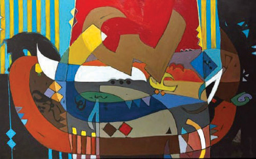 بينما تميزت أعمال الفنان التشكيلي خالد المطلق بتكوناتها التشكيلية الإبداعية التي دمجت بين حروف اللغة العربية بأصالتها ونقائها لتشكل تناغماً بصرياً فريداً يوضح فيه جمالية هذه المفردة وبتكوين تشكيلي معاصر يجعل من أعماله أيقونات إبداعية تعكس الأصالة العربية بمفهوم تشكيلي مختلف.