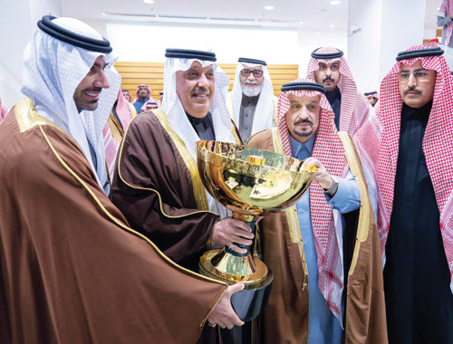 تحت رعاية خادم الحرمين الشريفين الملك سلمان بن عبدالعزيز آل سعود - أيده الله -، ونيابةً عن صاحب السمو الملكي الأمير محمد بن سلمان بن عبدالعزيز آل سعود ولي العهد رئيس مجلس الوزراء -حفظه الله -، حضر صاحب السمو الملكي الأمير فيصل بن بندر بن عبدالعزيز أمير منطقة الرياض مساء أمس الحفل السنويّ الكبير على كأس الملك عبدالعزيز ( المؤسس ) - رحمه الله - وكأسي خادم الحرمين الشريفين للإنتاج المحليّ الفئة الأولى ومفتوح الدرجات المصنف ضمن سباقات الفئة الثالثة دوليًا، وذلك في ميدان الملك عبدالعزيز للفروسية بالجنادرية.