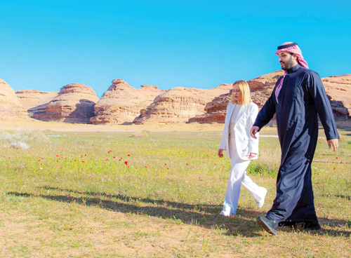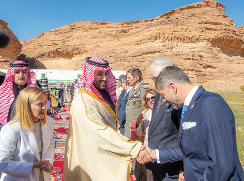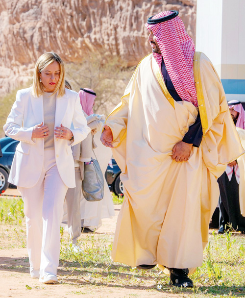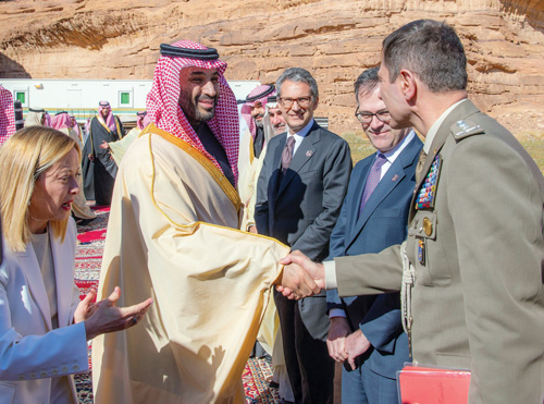 استقبل صاحب السمو الملكي الأمير محمد بن سلمان بن عبدالعزيز آل سعود ولي العهد رئيس مجلس الوزراء، في المخيم الشتوي في العلا أمس دولة السيدة جورجيا ميلوني رئيسة وزراء الجمهورية الإيطالية.