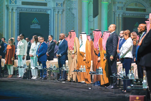 على صعيد متصل اخُتتمت أمس أعمال الاجتماع الوزاري «الطاولة المستديرة» لوزراء العمل ضمن النسخة الثانية من المؤتمر الدولي لسوق العمل، برئاسة معالي وزير الموارد البشرية والتنمية الاجتماعية المهندس أحمد بن سليمان الراجحي، بحضور 40 وزيرًا للعمل من دول مختلفة حول العالم، تشمل مجموعة العشرين وأوروبا وآسيا ومنطقة الشرق الأوسط وإفريقيا، والأمريكيتين، إضافة إلى المدير العام لمنظمة العمل الدولية السيد جيلبرت هونغبو.