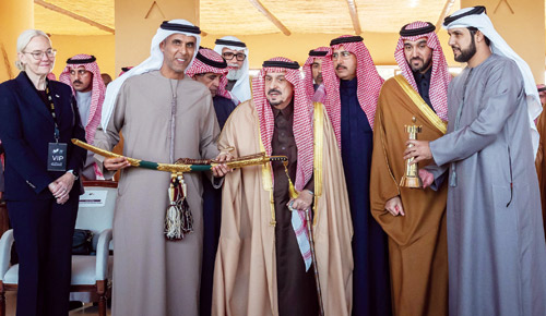 تحت رعاية خادم الحرمين الشريفين الملك سلمان بن عبدالعزيز آل سعود، ونيابة عن صاحب السمو الملكي الأمير محمد بن سلمان بن عبدالعزيز آل سعود ولي العهد رئيس مجلس الوزراء -حفظهما الله-، توج صاحب السمو الملكي الأمير فيصل بن بندر بن عبدالعزيز أمير منطقة الرياض أمس الفائزين في مهرجان خادم الحرمين الشريفين للهجن في نسخته الثانية بالجنادرية.