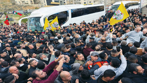 في صفقة تبادل الأسرى الخامسة بين حماس وإسرائيل وصل إلى رام الله 83 1أسيراً فلسطنياً تم إطلاق سراحهم من السجون الإسرائيلية، وفي وقت سابق أعلن الجيش الإسرائيلي أن الأسرى الثلاثة الذين تم الإفراج عنهم من غزة عبروا إلى الأراضي الإسرائيلية، وذلك بعد أن كان قد استلمهم من الصليب الأحمر الدولي. وقد عرضت «حماس» الرهائن الثلاث على منصة في دير البلح قبل تسليمهم إلى الصليب الأحمر، وأكد قيادي أن «كتائب القسام» الجناح العسكري للحركة «أنهت عملية تسليم الدفعة الخامسة من الأسرى الإسرائيليين للصليب الأحمر في دير البلح». وتبادلت حركة حماس وإسرائيل الدفعة الخامسة من المحتجزين والمعتقلين في إطار اتفاق الهدنة في غزة، على الرغم من شكوك تخيّم على الصفقة بعد اقتراح الرئيس دونالد ترامب سيطرة الولايات المتحدة على القطاع.