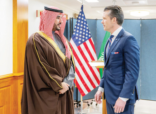 استقبل معالي وزير الدفاع الأمريكي بيت هيغسيث، في مقر وزارة الدفاع بالعاصمة الأمريكية واشنطن، أمس صاحب السمو الملكي الأمير خالد بن سلمان بن عبدالعزيز وزير الدفاع.