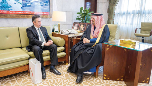 استقبل صاحب السمو الملكي الأمير فيصل بن بندر بن عبدالعزيز أمير منطقة الرياض، في مكتبه بقصر الحكم أمس سفير جمهورية الأوروغواي الشرقية خيراردو براتو، بمناسبة تعيينه سفيرًا لدى المملكة.