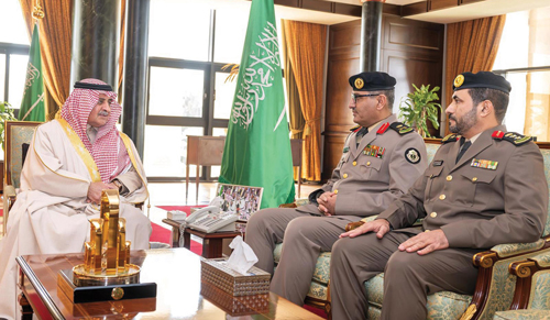من جانبه، أعرب اللواء الفايز عن شكره وتقديره لسمو أمير منطقة تبوك، على دعمه ومتابعتهم الدائمة لكافة القطاعات الأمنية في المنطقة.كما استقبل أمير منطقة تبوك في مكتبه بالإمارة الخميس مدير شرطة منطقة تبوك اللواء إبراهيم بن سليمان الزبن، يرافقه العقيد حميد بن جابر الصحفي بمناسبة تعيينه مديرًا لإدارة المرور بالمنطقة.