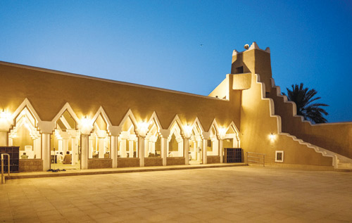 وتتميز عمارة مسجد القبلي، الذي تقدر مساحته قبل الترميم بنحو 642.85 م2، فيما ستبلغ بعد التطوير 804.32 م2، بالطراز النجدي الذي يستخدم تقنيات البناء بالطين وتوظيف المواد الطبيعية، ويعرف عنه قدرته على التعامل مع البيئة المحلية والمناخ الصحراوي الحار، فيما يمثل تشكيل عناصر الطراز النجدي انعكاسًا لمتطلبات الثقافة المحلية.