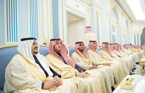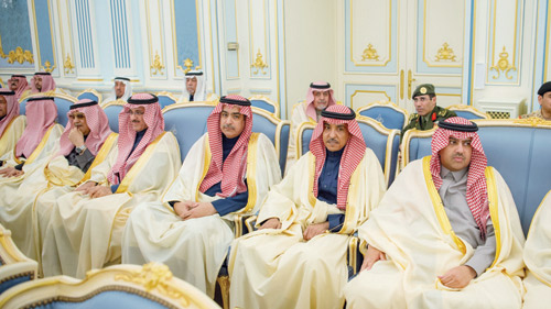 حضر الاستقبال صاحب السمو الأمير خالد بن فهد بن خالد، صاحب السمو الملكي الأمير تركي بن فيصل بن عبدالعزيز، صاحب السمو الملكي الأمير فيصل بن بندر بن عبدالعزيز أمير منطقة الرياض، صاحب السمو الملكي الأمير مشعل بن سعود بن عبدالعزيز، صاحب السمو الملكي الأمير منصور بن سعود بن عبدالعزيز، صاحب السمو الأمير فهد بن عبدالله بن محمد، صاحب السمو الملكي الأمير خالد بن سعد بن عبدالعزيز، صاحب السمو الملكي الأمير سعود بن مساعد بن عبدالعزيز، صاحب السمو الأمير سعد بن فيصل بن سعد الأول بن عبدالرحمن، صاحب السمو الأمير خالد بن مساعد بن عبدالرحمن، صاحب السمو الملكي الأمير بندر بن مساعد بن عبدالعزيز، صاحب السمو الأمير فيصل بن محمد بن عبدالعزيز، صاحب السمو الأمير الدكتور عبدالرحمن بن سعود الكبير، صاحب السمو الملكي الأمير سعد بن فهد بن محمد بن عبدالعزيز، صاحب السمو الأمير خالد بن سعد بن فهد،صاحب السمو الملكي الأمير محمد بن مشاري بن عبدالعزيز، صاحب السمو الملكي الأمير خالد بن بندر بن عبدالعزيز مستشار خادم الحرمين الشريفين، صاحب السمو الملكي الأمير الدكتور منصور بن متعب بن عبدالعزيز وزير دولة عضو مجلس الوزراء، صاحب السمو الملكي الأمير متعب بن عبدالله بن عبدالعزيز، صاحب السمو الملكي الأمير فيصل بن خالد بن عبدالعزيز مستشار خادم الحرمين الشريفين، صاحب السمو الملكي الأمير الدكتور فيصل بن محمد بن سعود بن عبدالعزيز، صاحب السمو الملكي الأمير عبدالعزيز بن محمد بن عبدالعزيز، صاحب السمو الملكي الأمير الوليد بن طلال بن عبدالعزيز، صاحب السمو الأمير تركي بن فهد بن جلوي، صاحب السمو الأمير نواف بن محمد بن عبدالله، صاحب السمو الملكي الأمير فيصل بن بندر بن خالد بن عبدالعزيز، صاحب السمو الأمير الدكتور سعود بن سلمان بن محمد، صاحب السمو الأمير الدكتور تركي بن سعود بن محمد، صاحب السمو الملكي الأمير فيصل بن سلطان بن عبدالعزيز، صاحب السمو الأمير الدكتور محمد بن سلمان بن محمد، صاحب السمو الأمير خالد بن سعد بن محمد بن عبدالرحمن، صاحب السمو الأمير فهد بن محمد بن سعود الكبير، صاحب السمو الأمير أحمد بن عبدالله بن عبدالرحمن، صاحب السمو الملكي الأمير يوسف بن مساعد بن عبدالعزيز، صاحب السمو الأمير خالد بن سعود بن خالد، صاحب السمو الأمير خالد بن فيصل بن تركي، صاحب السمو الأمير بندر بن سعود بن محمد، صاحب السمو الملكي الأمير عبدلعزيز بن ماجد بن عبدالعزيز، صاحب السمو الملكي الأمير عبدالعزيز بن بندر بن عبدالعزيز، صاحب السمو الملكي الأمير منصور بن ناصر بن عبدالعزيز، صاحب السمو الأمير الدكتور بندر بن سلمان بن محمد، صاحب السمو الملكي الأمير عبدالعزيز بن أحمد بن عبدالعزيز، صاحب السمو الأمير محمد بن سعد بن محمد بن سعود بن عبدالرحمن، صاحب السمو الملكي الأمير الدكتور عبدالعزيز بن سطام بن عبدالعزيز مستشار خادم الحرمين الشريفين، صاحب السمو الملكي الأمير عبدالعزيز بن عبدالإله بن عبدالعزيز، صاحب السمو الملكي الأمير فيصل بن تركي بن عبدالعزيز المستشار في الديوان الملكي صاحب السمو الملكي الأمير عبدالله بن مساعد بن عبدالعزيز، صاحب السمو الملكي الأمير بندر بن خالد بن فيصل بن عبدالعزيز المستشار في الديوان الملكي، صاحب السمو الأمير فهد بن سعد بن عبدالله محافظ الدرعية، صاحب السمو الملكي الأمير خالد بن تركي بن فيصل بن تركي الأول بن عبدالعزيز، صاحب السمو الملكي الأمير عبدالرحمن بن مساعد بن عبدالعزيز، صاحب السمو الملكي الأمير محمد بن خالد بن عبدالله بن فيصل بن عبدالعزيز، صاحب السمو الملكي الأمير تركي بن عبدالرحمن بن عبدالعزيز، صاحب السمو الأمير فهد بن محمد بن عبدالله بن عبدالرحمن، صاحب السمو الأمير سعود بن عبدالله بن محمد بن عبدالرحمن، صاحب السمو الأمير نواف بن سعد بن عبدالله، صاحب السمو الملكي الأمير فيصل بن تركي بن فيصل بن تركي الأول بن عبدالعزيز، صاحب السمو الملكي الأمير نايف بن ممدوح بن عبدالعزيز صاحب السمو الأ