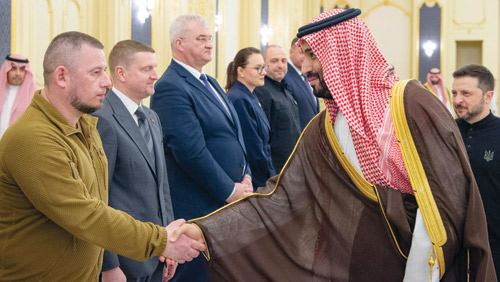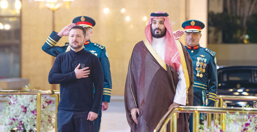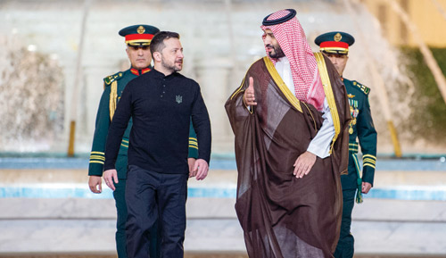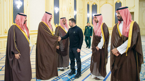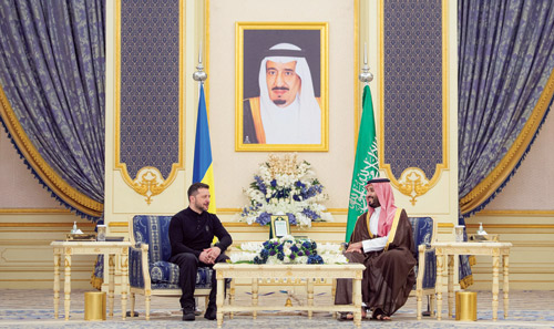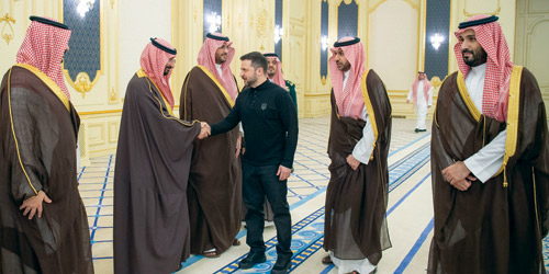 استقبل صاحب السمو الملكي الأمير محمد بن سلمان بن عبدالعزيز آل سعود ولي العهد رئيس مجلس الوزراء في الديوان الملكي بقصر السلام بجدة، أمس، فخامة الرئيس فولوديمير زيلينسكي، رئيس أوكرانيا.