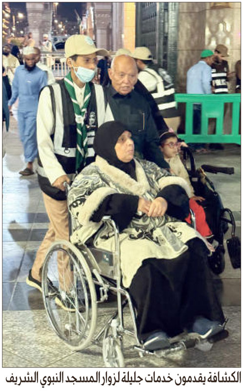وفي قلب المسجد، كانت الحاجة أم فاطمة تبحث عن طريقها وسط الزحام للوصول إلى الروضة الشريفة، لكن التيه كان سيد الموقف، لمحت شابة ترتدي المنديل الكشفي، فسألتها بتردد عن الطريق، وبابتسامة واثقة، قالت فتاة الكشافة فجر المطيري: «لا تقلقي، سأوصلك إلى هناك». وسارت معها، متجاوزة الحشود برفق، حتى أوصلتها إلى وجهتها وهي تلهج بالدعاء لها، شكرًا وامتنانًا. هكذا هم فتيان وفتيات الكشافة في المسجد النبوي، شعلة من العطاء والتفاني، يسيرون بين المصلين كأنهم ملائكة رحمة، يزرعون البهجة والراحة في قلوب زوار مسجد المصطفى صل الله عليه وسلم.