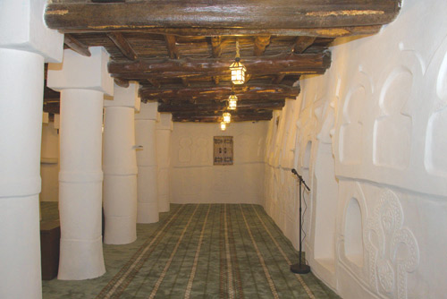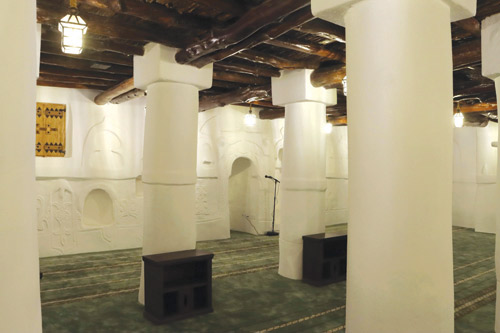 ويمتاز المسجد بعمارته البسيطة غير المتكلفة، ويوجد به بئر في أحد زواياه، كانت المصدر الرئيس للمياه، في حين يتفرد بنمط النسيج العمراني المتضام للمباني والممرات في قرى أعالي الجبال والهضاب، وتتعدد أشكال البناء فيه وأبرزها البناء بالطين، والمداميك.