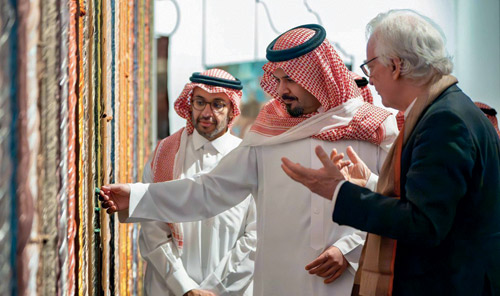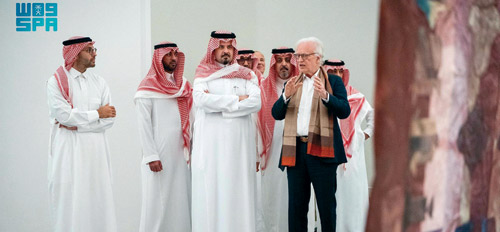 واطّلع سموه خلال جولته على ما يحتويه بينالي من أكثر من 500 قطعة تاريخية وأعمال فنية معاصرة، معروضة تحت سقف واحد على مساحة تتجاوز 100 ألف متر مربع، وتضم المعروضات مقتنيات نادرة من مؤسسات فنية إسلامية عالمية، بالإضافة إلى أعمال ومخطوطات من مكة المكرمة والمدينة المنورة.