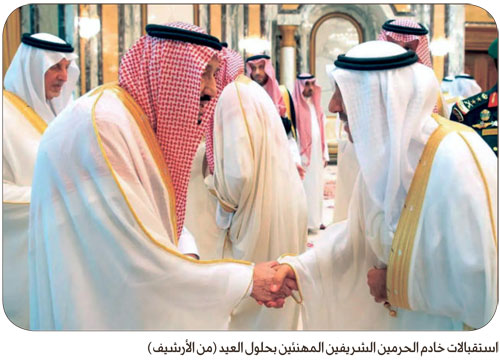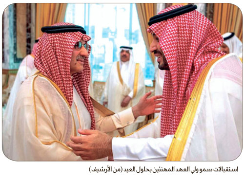 ما يميّز هذا الوطن الحبيب، أن قيادته الحكيمة، تكون مشاركة لأبنائها السعوديين والمقيمين على حد سواء، هذه الفرحة والسعادة، فمنذ اليوم الأول من أيام عيد الفطر المبارك، تفتح أبوابها، على رأسهم خادم الحرمين الشريفين الملك سلمان بن عبدالعزيز آل سعود، وولي العهد رئيس مجلس الوزراء صاحب السمو الملكي الأمير محمد بن سلمان بن عبدالعزيز آل سعود - حفظهم الله ورعاهم -، وأصحاب السموّ أمراء المناطق، يستقبلون المهنّئين بالعيد، بصدور مشرعة، وابتسامات مشرقة، تملأ أسارير وجوههم، تشيع الطمأنينة في أنفس المهنئين، وتمنحهم الطاقة الإيجابية للإنجاز وللعمل وللعطاء.
