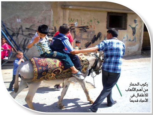 أما الحمير في العيد فلها قصص مختلفة، وهذا الاختلاف يأتي في السعر «أي ما يدفع في المشوار الواحد» وذلك حسب المسافة، وحسب (زركشة) الحمار، وحسب أصل الحمار»، ونادراً ما تكون حمارة في مهرجان العيد، وذلك لأنها تشغل صاحبها في الدفاع عنها، من (معاكسات الحمير طبعاً) وكم أسقط الحمار راكبه في مهرجان العيد بسبب حركات تلك المعاكسات.