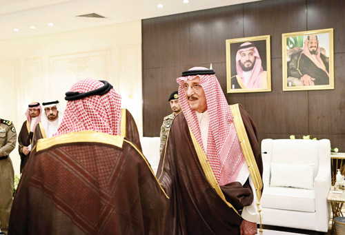 استقبل صاحب السمو الملكي الأمير محمد بن ناصر بن عبدالعزيز أمير منطقة جازان، بقصر سموه بمدينة جيزان أمس المحافظين ورؤساء المراكز ومشايخ القبائل وجمعًا من المواطنين، الذين قدموا للسلام على سموه وتهنئته بمناسبة حلول عيد الفطر.