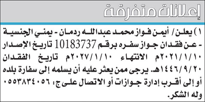 الجمعة/السبت 13-14 شوال 1446 العدد 18921