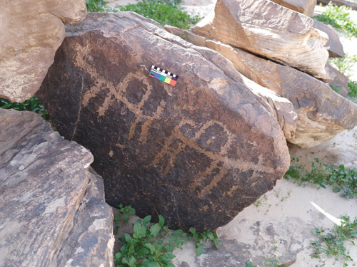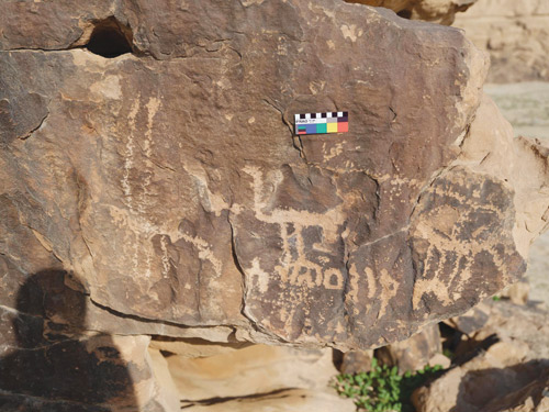 وتضمنت الرسوم المكتشفة مشاهد صيد ورسومات تُصوّر فرسانًا يطاردون طائر النعام، ونقوشًا على أحد الأحجار لجملين معكوسين، إضافة إلى نقوشٍ عربية مبكرة تعود إلى مرحلتين تاريخيتين استنادًا إلى أشكال حروفها، أولهما المرحلة المتوسطة، وثانيهما المرحلة المتأخرة، وهي دليل على الاستقرار وإثبات للوجود البشري واستيطانهم في تلك المنطقة خلال الفترة التاريخية بين القرن الرابع قبل الميلاد إلى الأول الميلادي.
