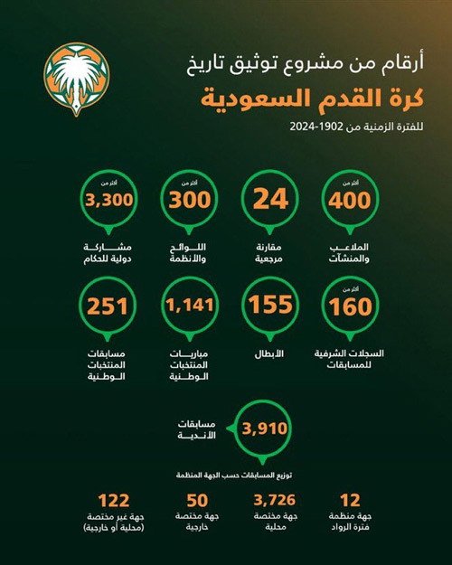 وتوصل فريق العمل أن الموسم الرياضي 1957 / 1958 هو انطلاقة الدوري السعودي (دوري المملكة)، وبذلك تكون نسخة الموسم الرياضي الحالي من الدوري السعودي للمحترفين «دوري روشن» هي النسخة رقم 68 على مدى التاريخ (منها 63 نسخة اكتملت وتحدد أبطالها إضافة إلى النسخة الحالية، وتوقفت 4 نسخ، ولم تستكمل لأسباب مختلفة)، إضافة إلى ما رصده فريق العمل من المسابقات التي أقيمت على مختلف الدرجات التصنيفية والجغرافية بأنظمة الدوري وخروج المغلوب خلال تاريخ كرة القدم السعودية.