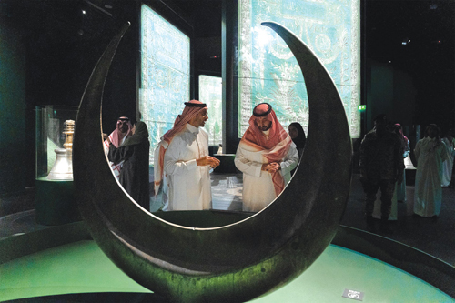 واطلع سموه خلال جولته في البينالي على أبرز المعروضات التي تسلّط الضوء على مسيرة الفنون الإسلامية عبر العصور، وشاهد مجموعة متنوعة من القطع الفنية والأثرية النادرة، إلى جانب أعمال معاصرة لفنانين سعوديين ودوليين تعكس ثراء الحضارة الإسلامية وتنوع أساليبها الفنية عبر أكثر من 500 قطعة تاريخية وعمل فني بالتعاون مع كبرى المتاحف والمؤسسات الثقافية العالمية.