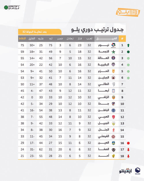 يستقبل العدالة في الأحساء ضيفه نيوم متمسكًا بالأمل الضئيل في خطف المركز الثاني، إذ يحل ثالثًا برصيد 55 نقطة بفارق 4 نقاط عن النجمة صاحب الوصافة بـ59 نقطة.