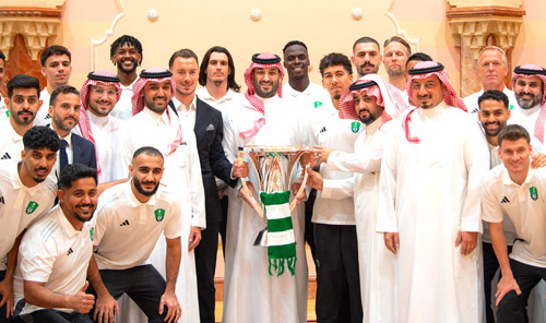 استقبل صاحب السمو الملكي الأمير محمد بن سلمان بن عبدالعزيز آل سعود ولي العهد رئيس مجلس الوزراء، في جدة يوم أمس، صاحب السمو الملكي الأمير عبدالعزيز بن تركي بن فيصل بن عبدالعزيز وزير الرياضة رئيس اللجنة الأولمبية والبارالمبية السعودية، ورئيس الاتحاد السعودي لكرة القدم ياسر المسحل، ورئيس مجلس إدارة شركة النادي الأهلي الدكتور خالد العيسى، وأعضاء الجهازين الفني والإداري، ولاعبي فريق كرة القدم؛ بمناسبة تحقيقهم بطولة دوري أبطال آسيا للنخبة 2025.