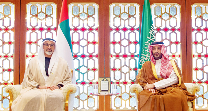 كما التقى سمو ولي العهد في الرياض أمس سمو الشيخ خالد بن محمد بن زايد آل نهيان ولي عهد أبوظبي.