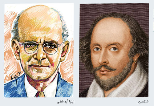 - الذي يجمع بين شكسبير وإيليا الورد لكن التناول مختلف.. رومانسية شكسبير كل الحب والجمال ورمز الحب والقتل معاً يراه أبو ماضي في بائعة الورد.