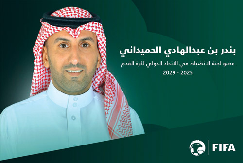 انتخبت الجمعية العمومية للاتحاد الدولي لكرة القدم، رئيس لجنة الانضباط في الاتحاد السعودي لكرة القدم بندر بن عبدالهادي الحميداني ليكون عضوًا في لجنة الانضباط بالاتحاد الدولي لكرة القدم حتى عام 2029.