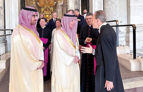 رأس معالي وزير الدولة للشؤون الخارجية عضو مجلس الوزراء ومبعوث شؤون المناخ الأستاذ عادل بن أحمد الجبير، وفد المملكة المشارك في مراسم تنصيب بابا الفاتيكان الجديد ليون الرابع عشر.