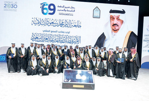 من جهة ثانية رعى سمو أمير منطقة الرياض مساء أمس الأول حفل تخريج الدفعة الـ69 من الطلاب والطالبات والمتميزين من جامعة الإمام محمد بن سعود الإسلامية، وذلك في قاعة الشيخ محمد بن إبراهيم آل الشيخ بمبنى المؤتمرات بالمدينة الجامعية.